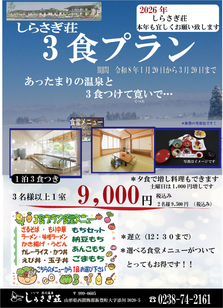 山形県置賜地方にある散居集落に囲まれたのどかなまち飯豊町。そこにあるのは心も体も癒してくれる人情あふれた温泉宿です。 保養・湯治に最適な当宿の温泉は地元の人々に愛され続けております。